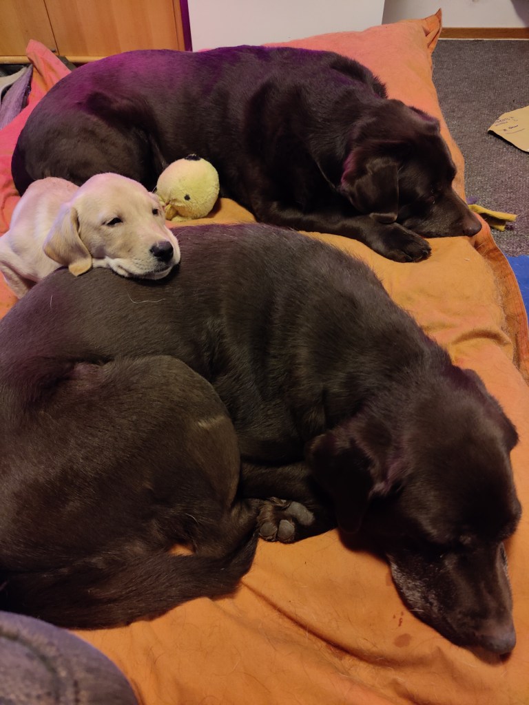 Lähes viikon pentuajan jälkeen tiedän jo mikä tässä on parasta. Noin 30 vuotta sitten minulla oli Linda, musta labradori,maailman uskollisin tyyppi. Ystävälläni Veera, Lindan paras kaveri. Iltaisin koirapuistossa haaveilimme kasvatuksesta ja monet kilometrit yhdessä taivallettiin. Hän perustikin kennelin, minulla tuli elämänvaihe jossa meni vuosia ilman koiraa. Hilman saapuessa meille 2011 haaveeni nosti taas päätään kun taas ystäväni eli vaihetta ilman koiraa , kunnes hänelle saapui Ronja.